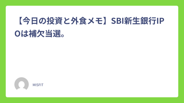 【今日の投資と外食メモ】SBI新生銀行IPOは補欠当選。